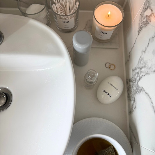 The threshold between public and private. Light FIRESIDE FLOWERS. Vanilla threaded with amber, myrrh, jasmine and bergamot, then take a long warm shower and prep for the night ahead.